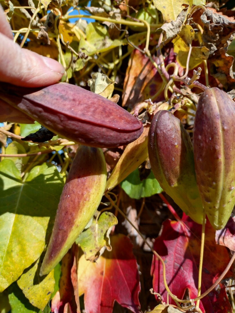 庭仕事の途中に薪小屋の脇でこんな植物を発見⇩これは?何かな〜?調べたらガガイモと言うらしい。
